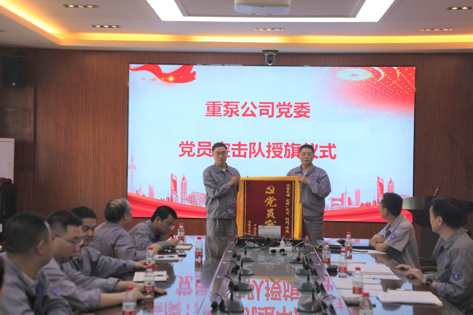重泵公司黨委對某項目泵組進行黨員突擊隊授旗