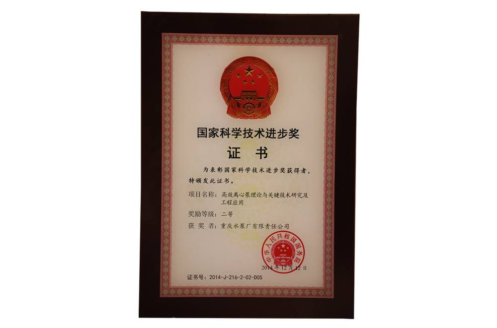 國家科學技術進步獎證書
