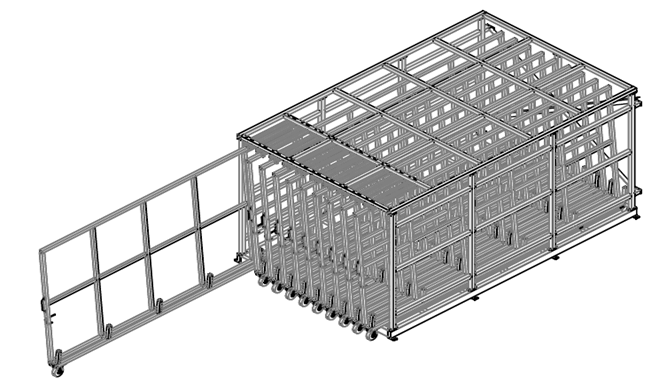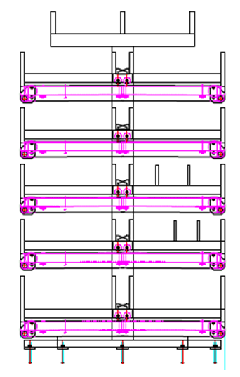 4、層數(shù):豎直并排10層,每層間隔200mm,底部采用滾輪結(jié)構(gòu),方便出料,不卡阻;