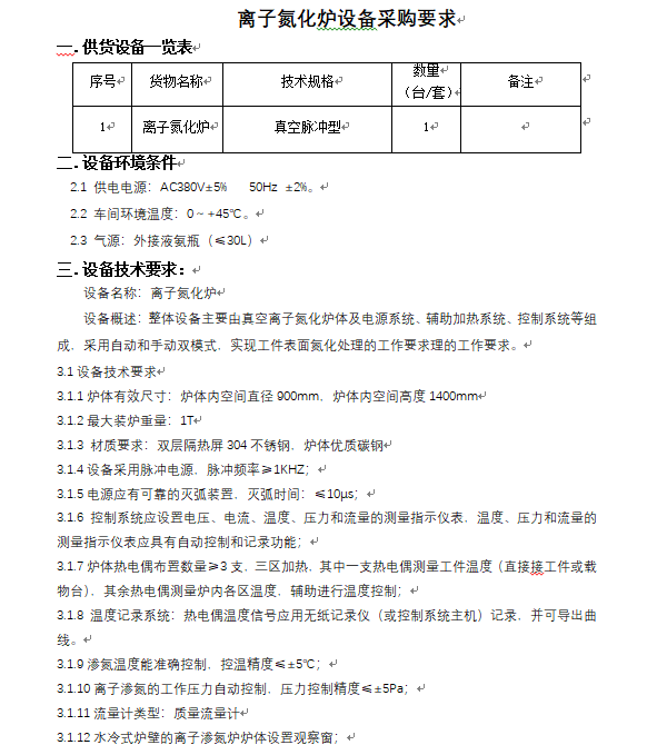 離子氮化爐 招標(biāo)公告(第四次)