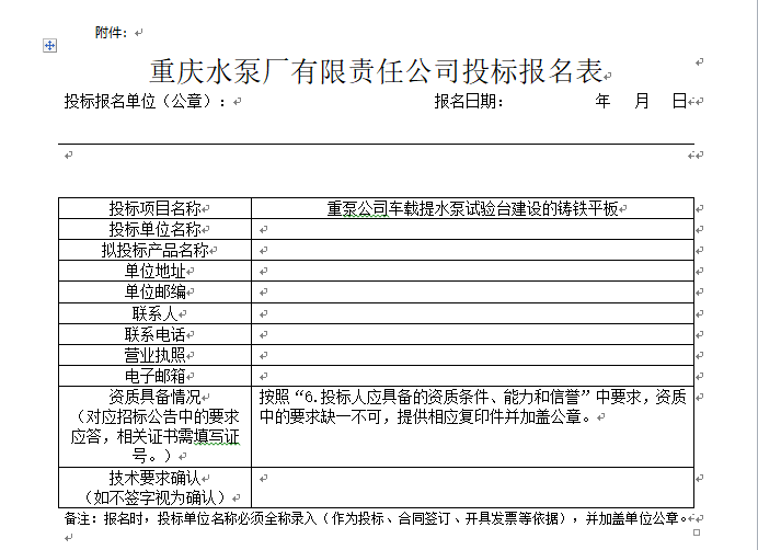重泵公司車載提水泵試驗(yàn)臺建設(shè)項(xiàng)目 鑄鐵平板 比選公告