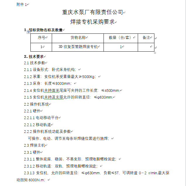 3D往復泵管路焊接專機 招標公告